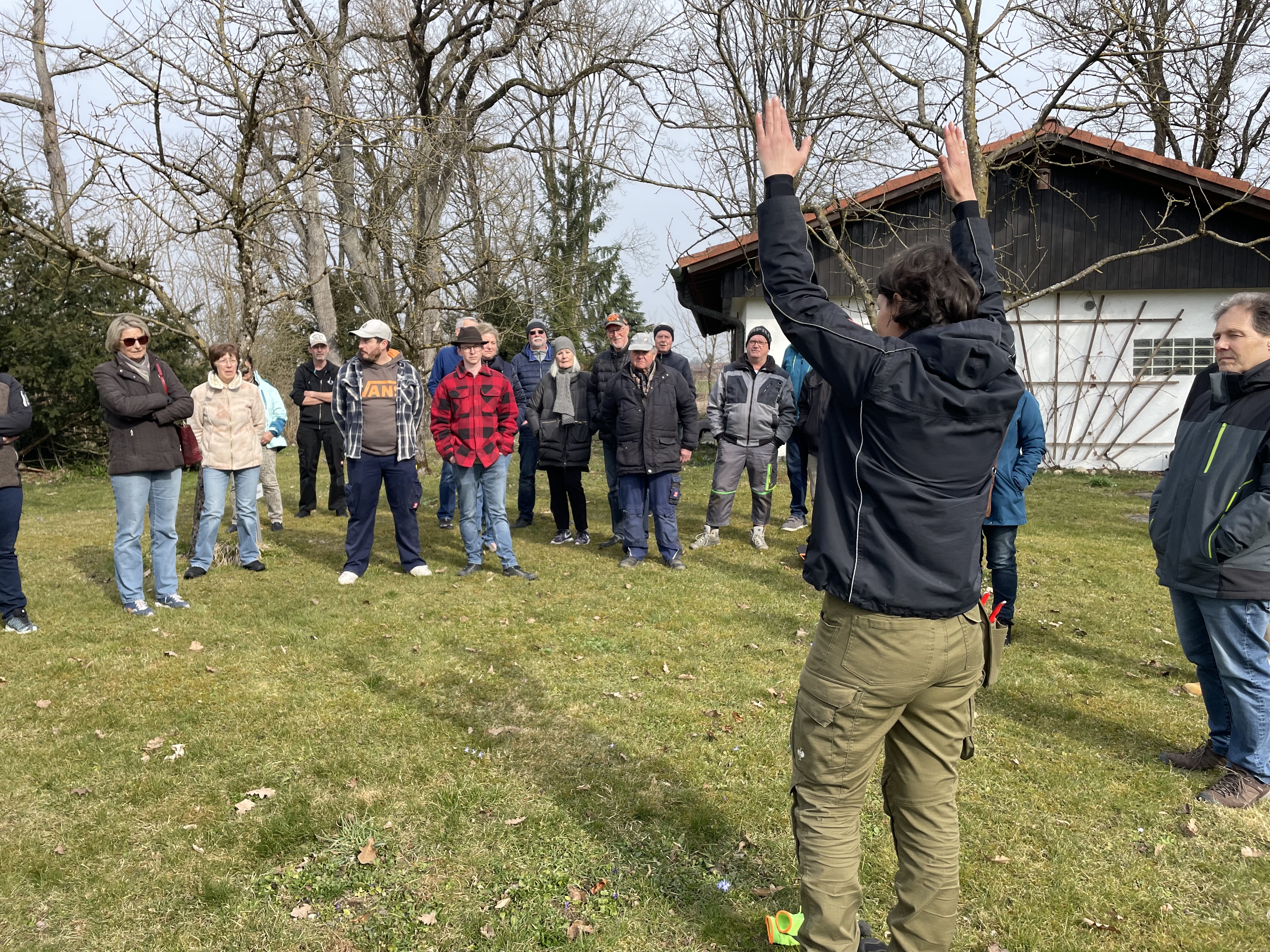 Fast 50 Mitbürger fanden sich im Siedlergarten ein, um sich über die Grundlagen des Obstbaumschnitts zu informieren. Fachfrau Ulrike Voß konnte an drei noch stehenden Apfelbäumen die wichtigsten Schneidearbeiten erklären. Dem letztjährigen Unwetter war der bisher größte und älteste Apfelbaum zum Opfer gefallen. Die Vorstandschaft wird in einer der nächsten Sitzungen beschließen, daß evtl zwei nue Bäume gepflanzt werden.