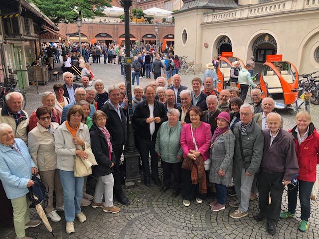 Fast 40 Teilnehmer aus den Reihen des Siedler und des Kriegervereins haben mit uns einen Ausflug in die Landeshauptstadt gemacht. Nach einer Stadtrundfahrt im Citybus trafen wir uns mit Pfr. Rainer Schießler, der uns über die Kirche Heilig Geist und den Viktualienmarkt Einiges zu berichten wußte.