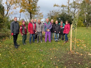 Zum herbstlichen Ramadama hatten wir uns vorgenommen , neue Obstbäume zu planzen, weil der Sommersturm im letzten Jahr drei unserer Apfelbäume umgerissen hatte. Hermann Dobler und ich haben dann im BAYOZ ( bayerisches Obstbaumzentrum) zugeschlagen und vier Apfelbäume gekauft: "Laetitia, Feuerwehrapfel, Winterzauber und Freiherr von Hallberg"